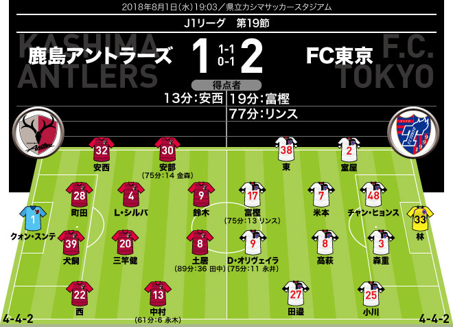 j1採点 寸評 鹿島1 2fc東京 長谷川采配ピタリ 期待に応えたfwと躍動した室屋を高評価 サッカーダイジェストweb