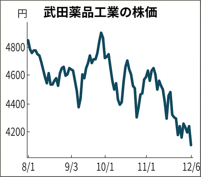 シャイアー買収の武田株 13年以来の4000円割れ 日本経済新聞