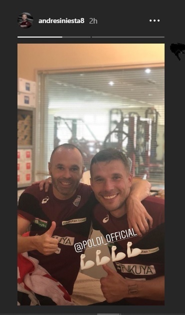 イニエスタがポドルスキとのツーショットを初公開 11日の磐田戦で夢のタッグ実現か サッカーダイジェストweb
