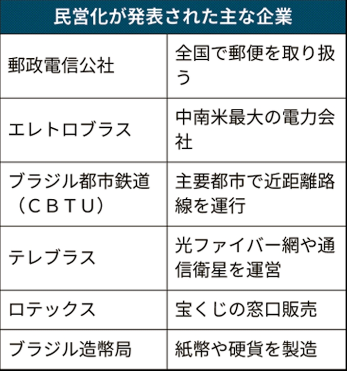 ブラジル政府 国営 国有企業17社を年内に民営化 日本経済新聞
