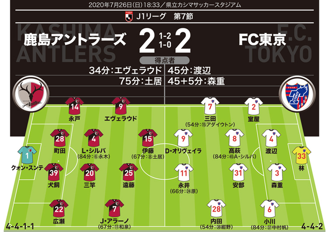 J1採点 寸評 鹿島2 2fc東京 鮮やかボレー弾の土居より高く評価したのは サッカーダイジェストweb