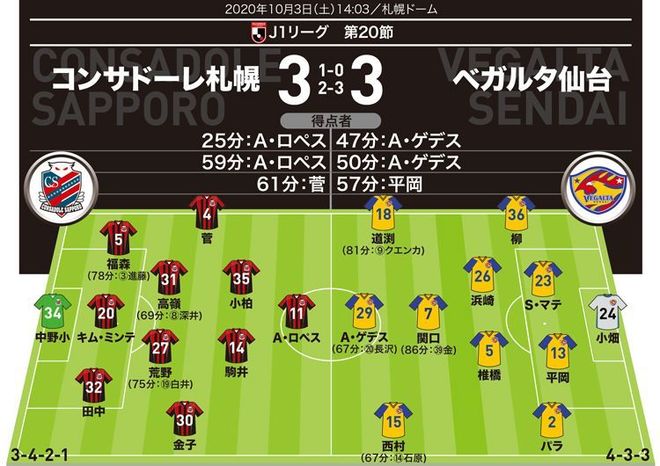 仙台 採点 寸評 fw西村が今季初の2得点も 勝利ならず 9月全敗でリーグ6連敗 スポーツ報知
