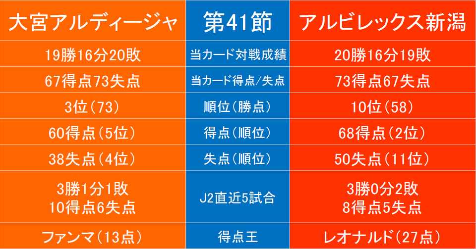 J2第41節 大宮アルディージャ アルビレックス新潟 の新潟から見たデータ F F English Football Note