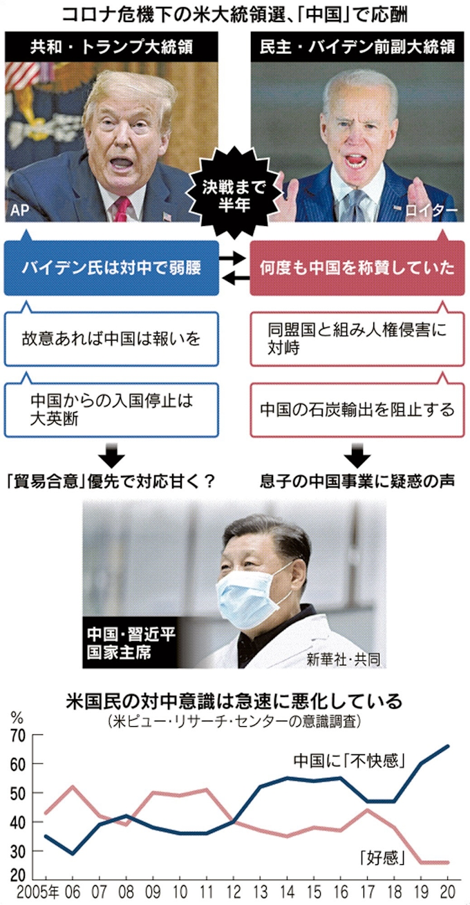 米大統領選 対中 競う皮肉 コロナ禍で迫る危険水域 日本経済新聞