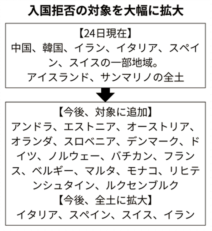 新型コロナ 入国拒否 欧州の広範囲に 政府が独仏など追加へ 日本経済新聞